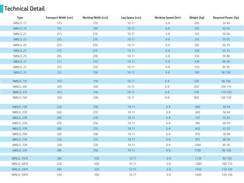 It is manufactured as 35,40,45,50 legs in foldable type with optional single and double row rotating harrow combination. It both saves time and fuel.